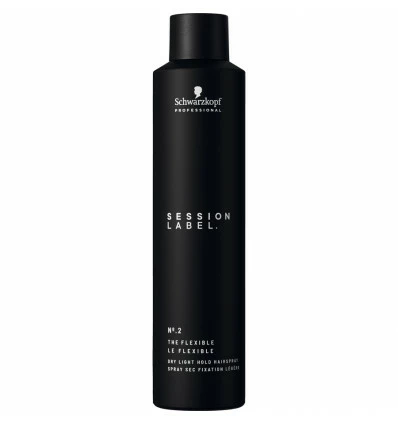 Le Flexible Session Label Schwarzkopf : spray sec fixation légère pour une fixation naturelle, un effet sec et un résultat léger.