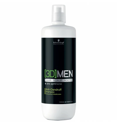 Shampooing Antipelliculaire 3DMen Schwarzkopf 1000ml : shampooing antipelliculaire pour homme composé de zinc pyrithione.