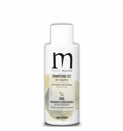 Shampooing Sec Patrice Mulato 35g : tous types de cheveux. 99% d’ingrédients d’origine naturelle. À la poudre de riz, amidon de maïs et kaolin.